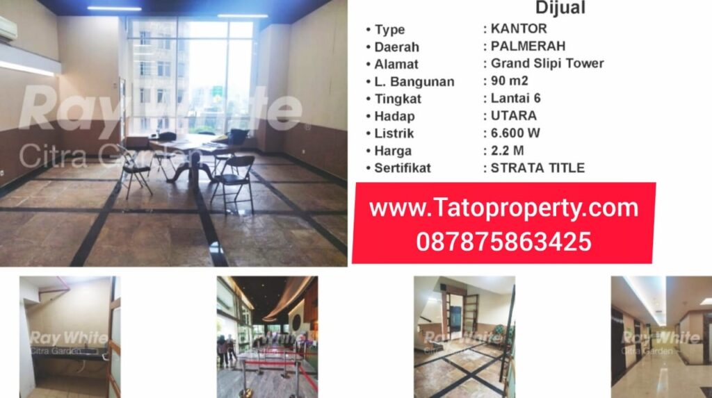 Dijual Office bagus luas 90 m 1.5 lantai , Di Grand Slipi Tower , Palmerah , harga 1.9 M nego dan KPR mudah dengan Tato 087875863425
