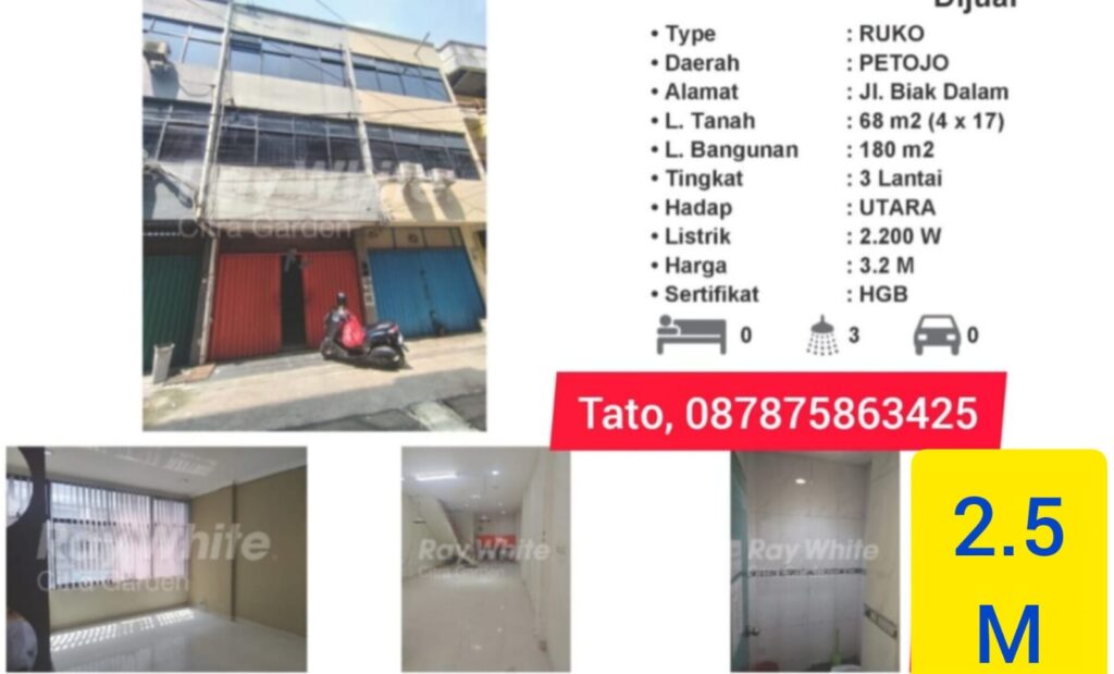 Jual Cepat Ruko jln Biak 4 lantai 2.5 M nego Tato 087875863425