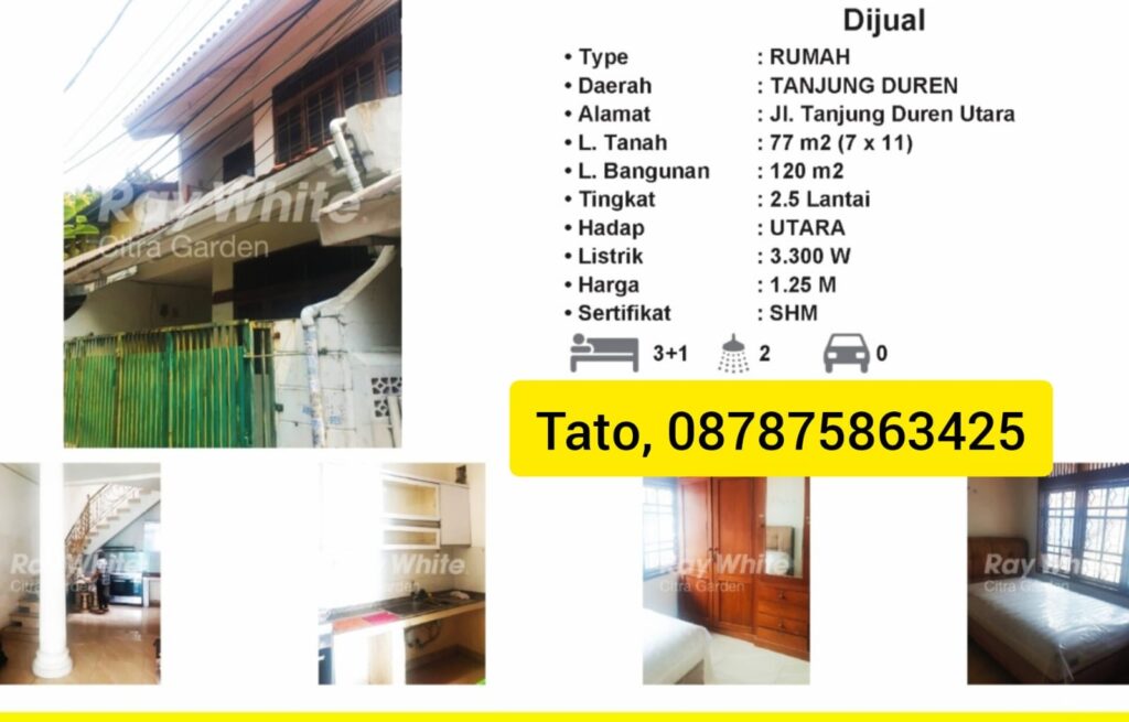 Jual Cepat Rumah Tanjung Duren Utara 1.2 M nego LT 77m 2.5lt